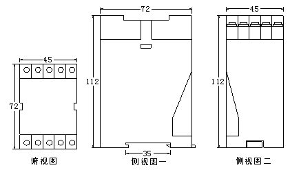 PKE系列電壓變送器接線示意圖 外形尺寸圖 (單位:毫米)
