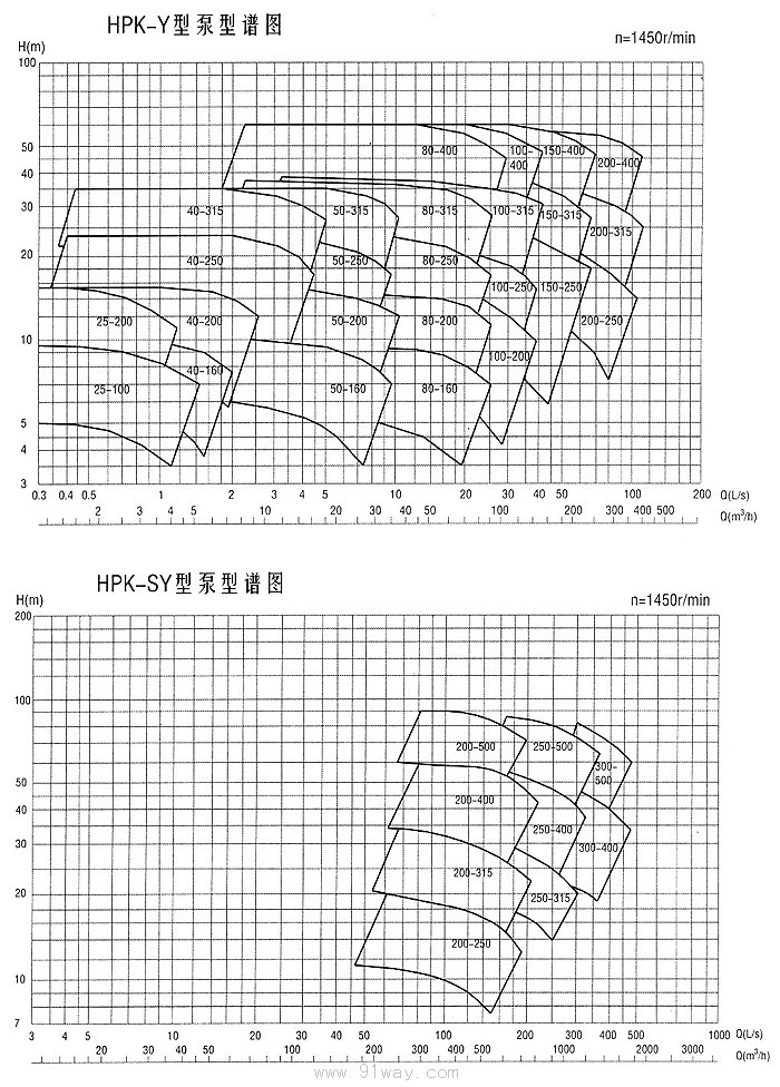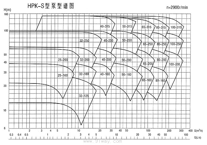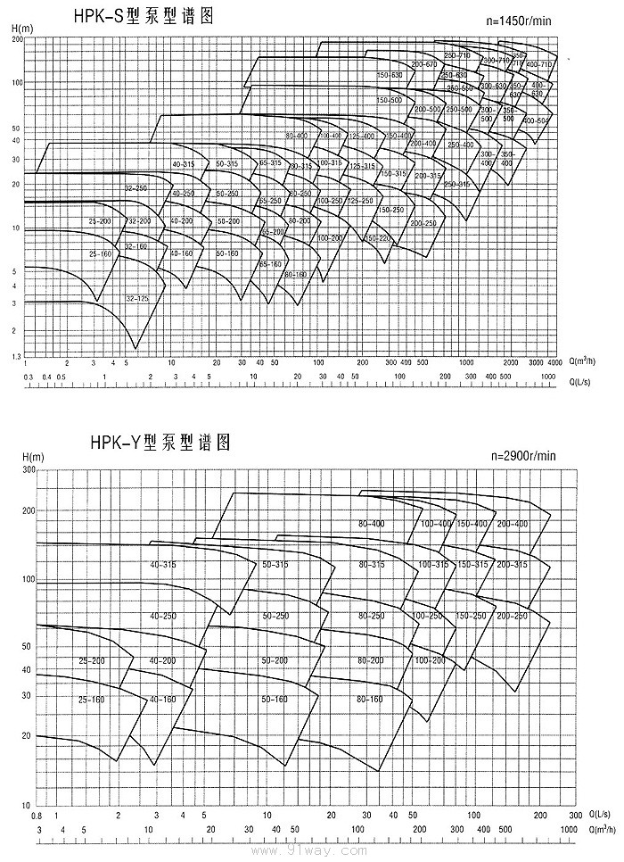 HPK-S、HPK-Y、HPK-SY、HPH型熱水循環(huán)泵特性曲線1