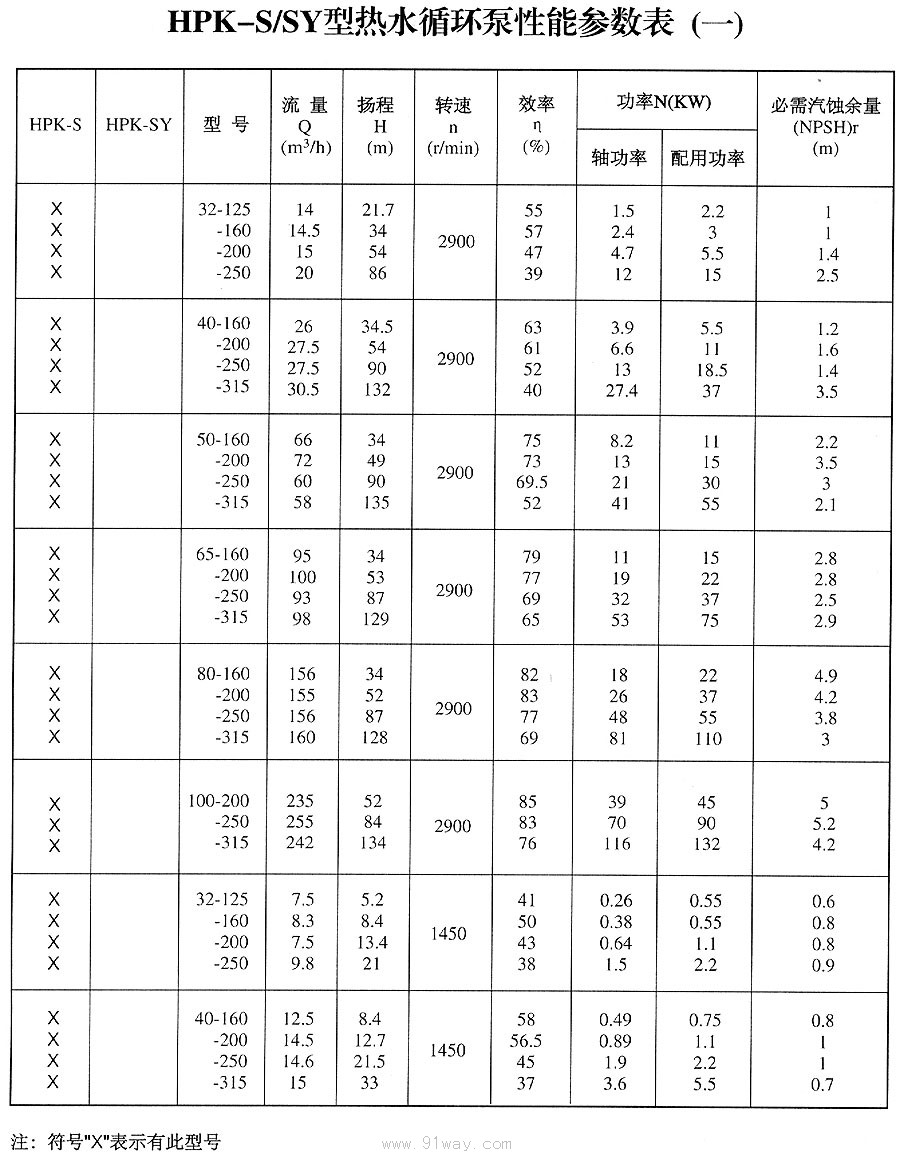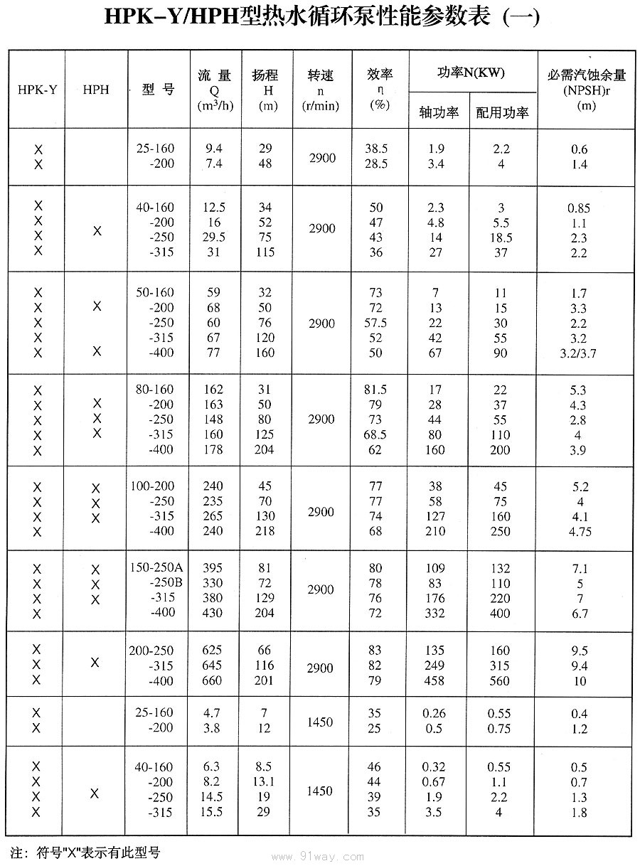 HPK-S、HPK-Y、HPK-SY、HPH型熱水循環(huán)泵技術(shù)參數(shù)1