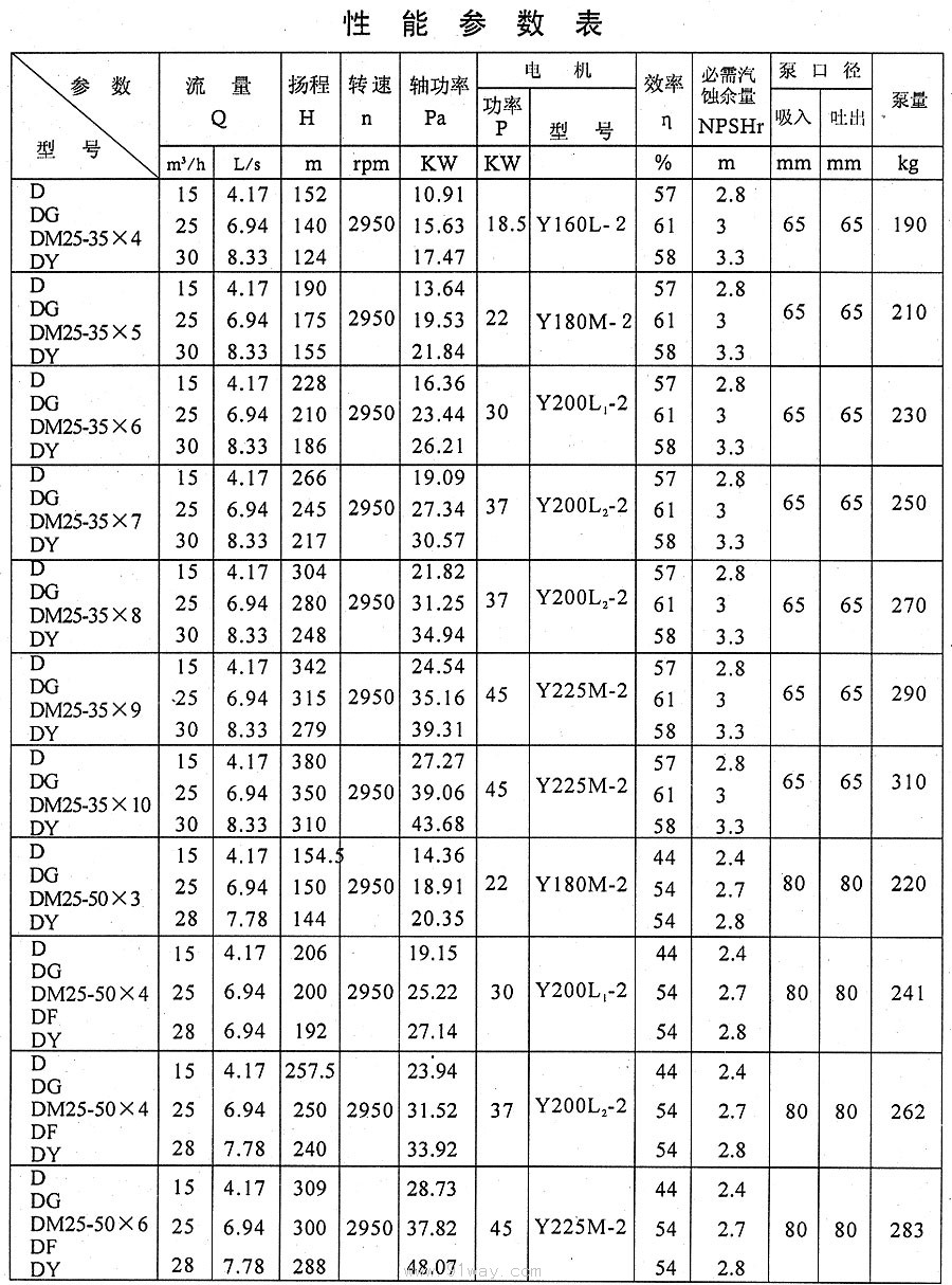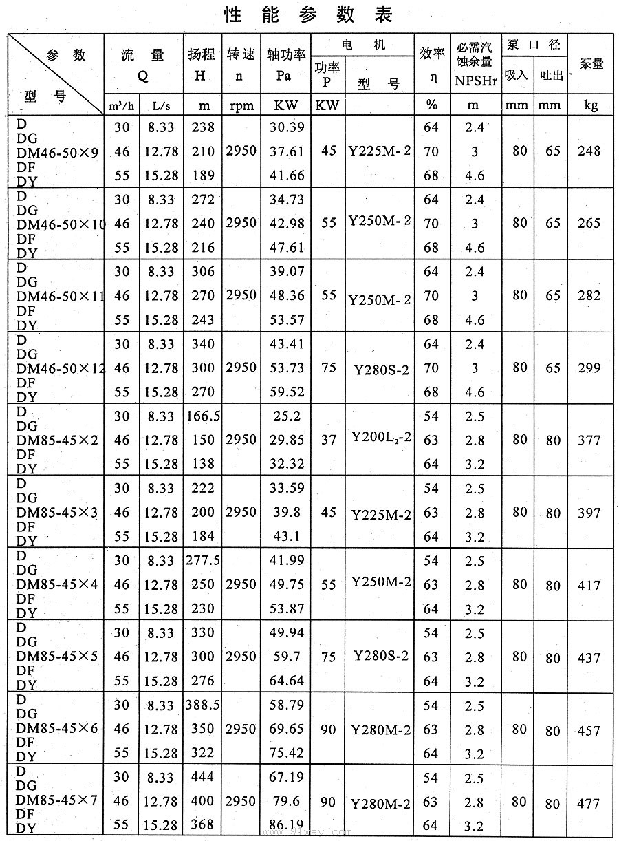 D、DG、DM、DF、DY型多級離心泵技術參數2