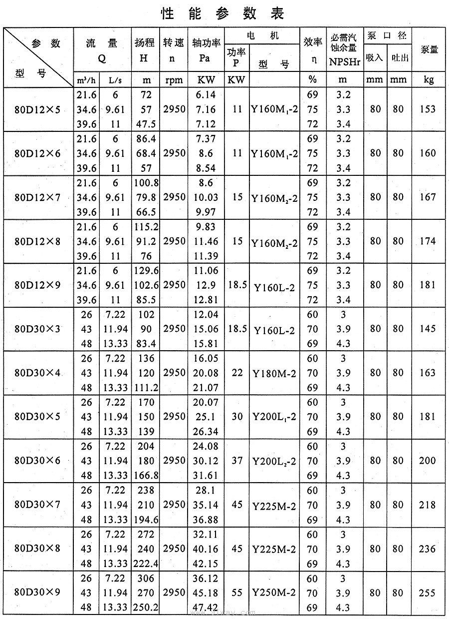 D、DG、DM、DF、DY型多級離心泵技術參數8