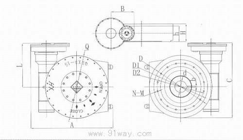 C系列雙級配電動蝸輪箱是二級齒輪變速配電裝蝸輪箱,配上小電裝而得到大力矩輸出。適用于球閥、蝶閥、旋塞閥等類閥門。特殊型可輸出360°轉角。