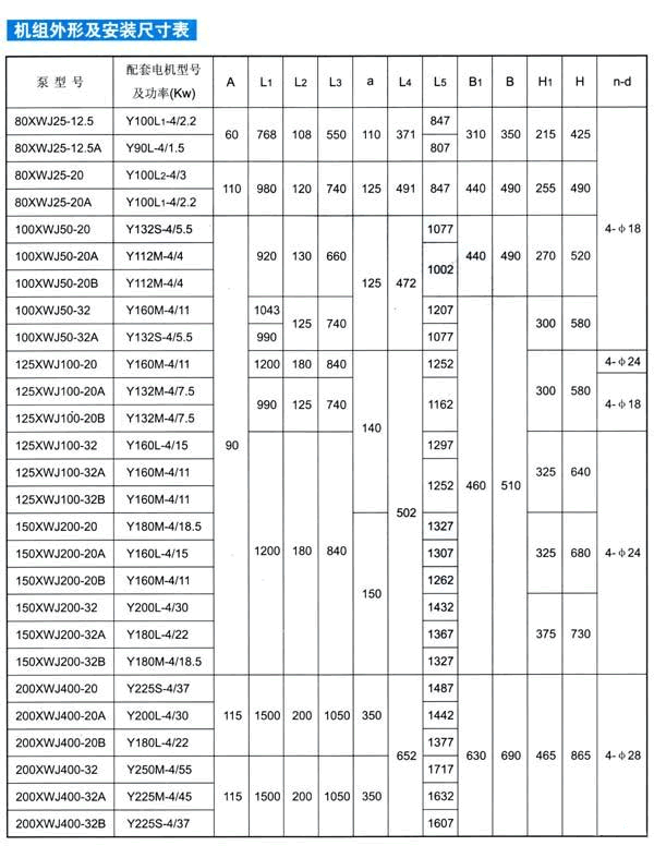 XWJ新型無堵塞紙漿泵(安裝尺寸)