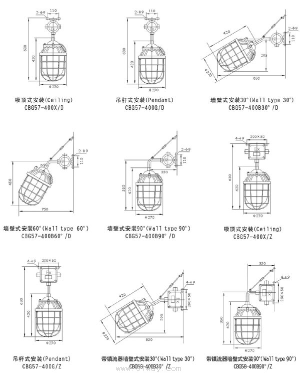 | 產品名稱: | CBG57-400隔爆型防爆燈(ⅡB) | |||||