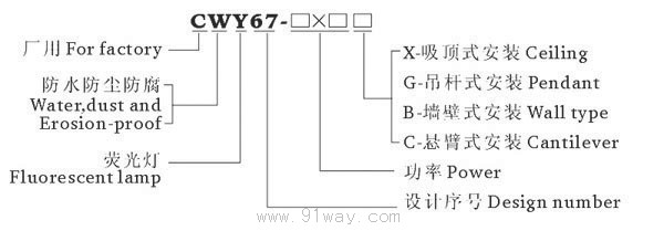 CWY67型防塵防水防腐節能全塑三防熒光燈型號含義 □Model Meaning