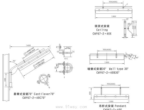 CWY67型防塵防水防腐節能全塑三防熒光燈安裝舉例 □lnstance