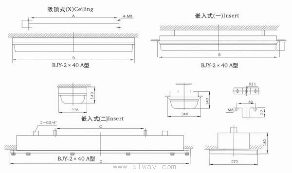 .配裝光源,單極瞬時啟動燈管;2x40W 1X40W 2X20W 1X20W