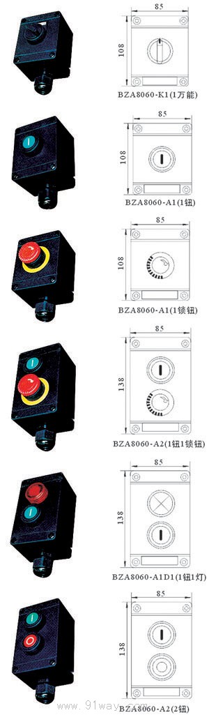 BZC8060-A2 A2-1□/1□ “□”為元件代號(詳見156) 訂貨時請注明 “□”is element code (see Page 156-157) | ||