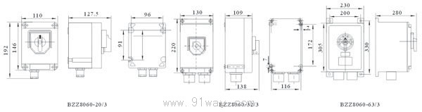 BZZ8060系列防爆防腐轉換開關(ⅡC)外形圖