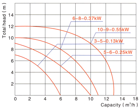 | 型號 | 揚程(m) | 流量(m3/h) | 電壓、頻率(V、Hz) | 功率(kw/HP) | 配管內徑(mm) | 外形尺寸(cm) | 重量(kg) |