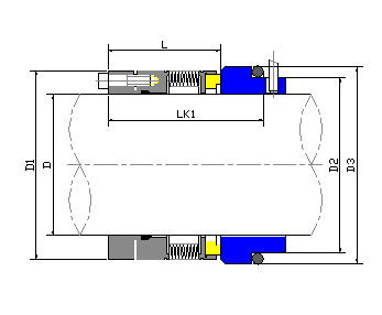 單端面. 內裝式. 平衡型. 旋轉型金屬波紋管機械密封. 采用柔性石墨作輔助密封.可以耐腐蝕.耐高溫.尤其是對于含顆粒介質,不易堵塞,沉結.