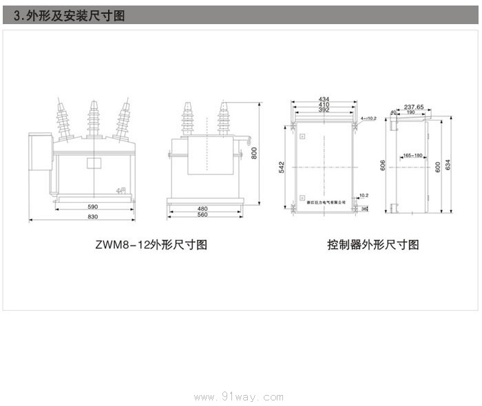 型號規格: ZW8M-12/630型智能式戶外永磁真空斷路器