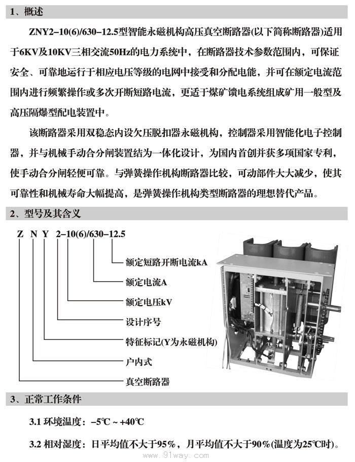 ZNY2-10(6)/630-12.5型智能永磁真空斷路器