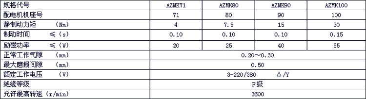| 產品名稱: | AZMK系列三相交流電磁制動器 | |||||