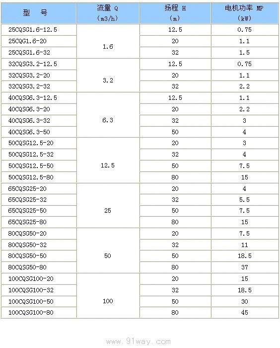 6、磁力泵的絕大多數零部件與CQB系列磁力泵互換,泵的性能與CQB系列相同;流量為3.2-100m 3 /h;揚程為20-80m;功率為0.75-75Kw。