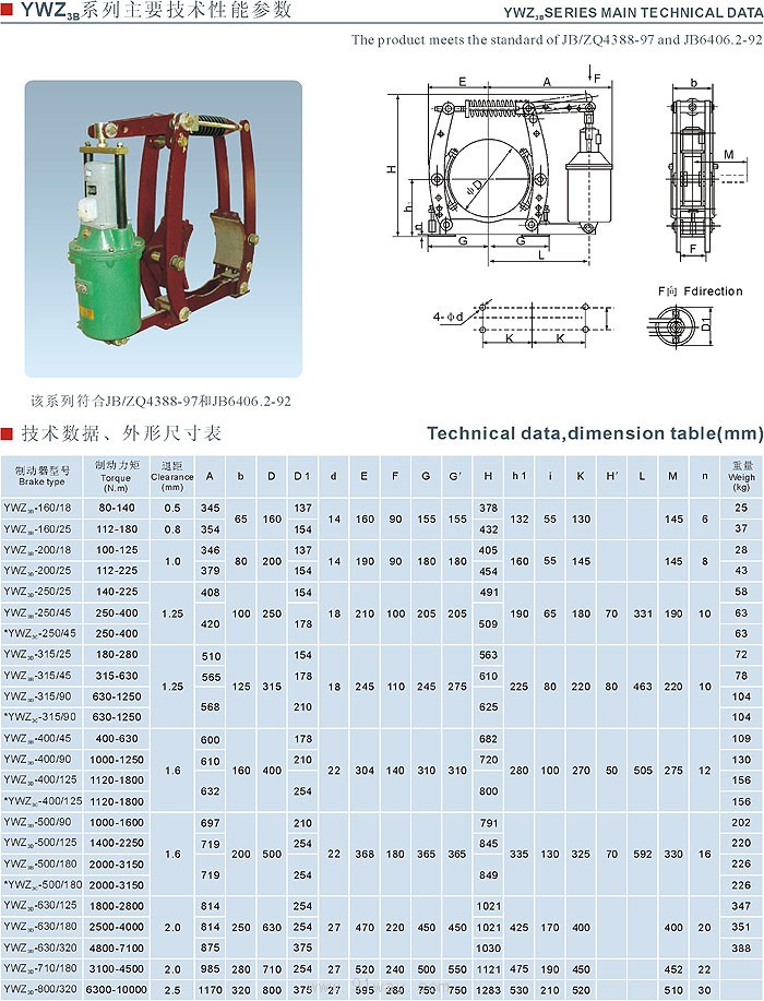 YWZ3B系列電力液壓塊式制動(dòng)器