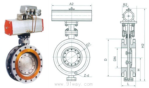 D643H型多層次金屬硬密封氣動蝶閥主要外形和連接尺寸