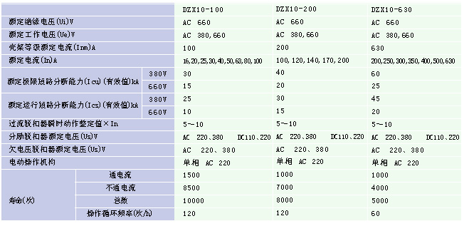 DZX10系列塑料外殼式限流斷路器技術參數