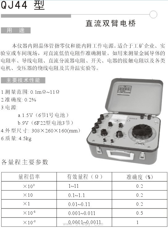 | 產品名稱: | QJ44直流雙臂電橋 | |||||