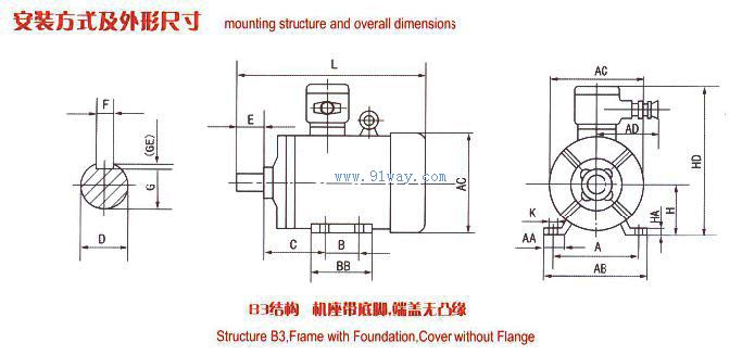 B34結(jié)構(gòu) 機座帶底腳.端蓋子有凸緣(帶螺孔)的電動機