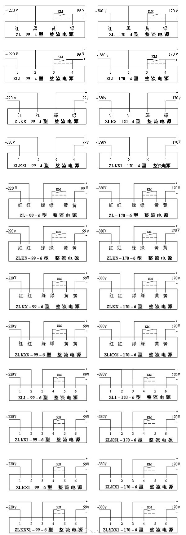 1.(ZLKS、ZL1、ZLKS1、ZLKX1、ZKKXS1)輸入交流電壓為220V,輸出直流電壓為99V