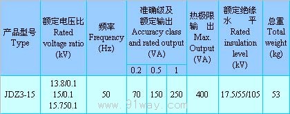 JDZ3-15型電壓互感器為單相,澆注絕緣,全封閉結構,戶內裝置,供15kV交流系統中做電壓、電能測量及繼電保護之用。