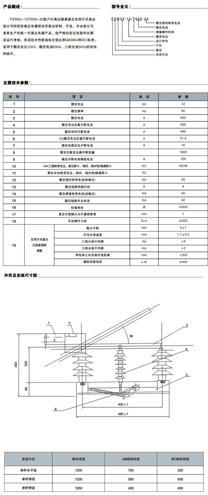 FZW32-12D/T630-20型戶外高壓隔離真空負荷開關是我公司引進西安高壓電器研究所技術開發的新一代高壓電器產品,各項技術性能指標符合GB3804和IEC標準,適用于戶外12KV、三相交流50Hz的供電網絡中。