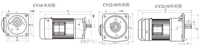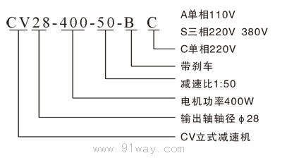 CV系列減速機功率:100W-3700W,減速比:3--200,軸大小可分為:18、22、28、32、40、50。電壓都為三相,安裝為立式。CV系列減速機可以附剎車的,并且所用的剎車都是從臺灣進口的。體積小、重量輕、超低音、安裝簡單、免保養的特點。 CV系列減速機適用于各類生產線、流水線、醫療機械、食品機械農業機械、包裝機械、辦公自動設備及中小型設備的支力配套部件等。 CV系列減速機型號意義 CV系列減速機結構圖 CV系列減速機性能參數