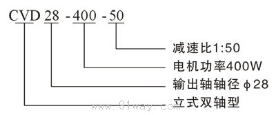 CVD(立式)雙軸型齒輪減速機功率:100W-3700W,減速比:3--200,軸大小可分為:18、22、28、32、40、50。電壓都為三相,安裝為立式。體積小、重量輕、超低音、安裝簡單、免保養的特點。 CVD(立式)雙軸型齒輪減速機主要由電動機、齒輪、高速電機和調速器組成。具有結構緊湊、壽命長、噪音低、體積小、扭力高、免保養、安裝維修方便等特點。齒輪減速機廣泛應用于冶金、礦山、起重、運輸、水泥、建筑、化工、紡織、印染、制藥等各種通用機械設備的減速傳動機構。 CVD(立式)雙軸型齒輪減速機型號意義 CVD(立式)雙軸型齒輪減速機結構圖 CVD(立式)雙軸型齒輪減速機性能參數