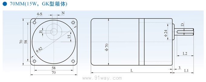 70MM小型齒輪減速馬達外形尺寸