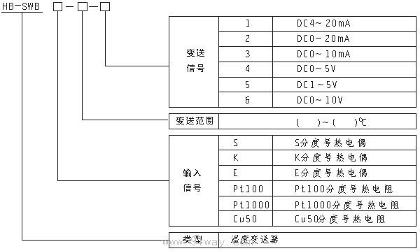 三、型號說明 四、外形結構及尺寸HB-SWB系列溫度變送器