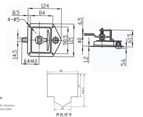 材質(zhì)及表面處理:鏡面拋光不銹鋼面板、把手,鍍鉻鋅合金鎖頭,配件鍍鋅