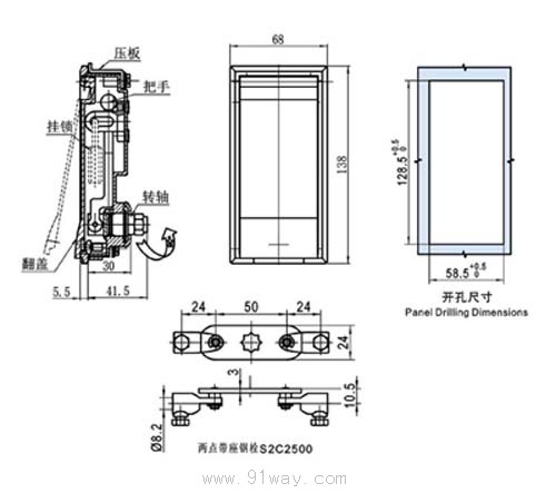 3.結(jié)構(gòu)功能: 兩點(diǎn)鎖住結(jié)構(gòu),推拉式鎖蓋;殼內(nèi)可安裝掛鎖;一般用于大型箱式柜門