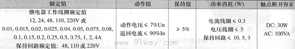 3.DX-31B(L),32A(L),32B(J)型信號繼電器主要技術參數