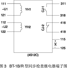 BT-1B/R型同步檢查繼電器背后接線圖: