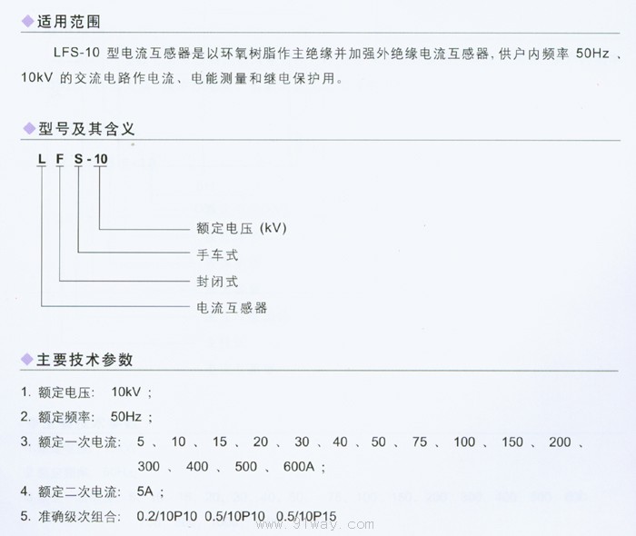 LFS,LFSQ-10(Q)型支柱式半封閉電流互感器為環(huán)氧樹脂澆注半封閉支柱式結(jié)構(gòu),適用于額定頻率50Hz,額定電壓10kV及以下的戶內(nèi)電力 線路及設備中作電流、電能的測量和繼電保護使用