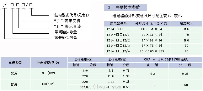 JZ14系列交直流中間繼電器以下簡稱繼電器,適用于交流50赫茲電壓流通380伏及以下;直流電壓220伏及以下的控制電路中作為增加信號大小及數量之用。