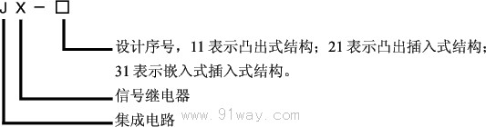 例: 嵌入插拔式結構,輔助直流工作電壓為110V,額定電流為0.5A的信號繼電器訂貨代號為: JX-31-0.5A-DC110V。