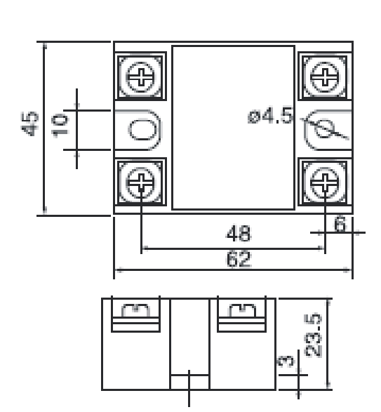 SSR-40VASSR單相電阻型固態(tài)調(diào)壓器外形尺寸和安裝接線圖:(單位:mm)